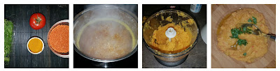 Červenú šošovicu uvaríme vo vode, pridáme soľ a lyžičku karí, alebo kurkumy. Varíme ju krátko, max. 10 minút, pretože červená šošovica je rýchlo uvarená. Potom ju scedíme a vodu necháme odkvapkať. Rajčiny nakrájame na malé kúsky a dáme ich do mixéra spolu so šošovicou, prelisovaným cesnakom, olivovým olejom, čili a so štipkou soli. Všetko dobre rozmixujeme, pridáme nasekaný čerstvý koriander a nátierka je hotová.